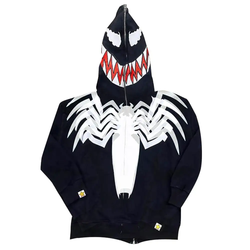 Spiderman Venom Cosplay Hoodie 3D Printed Hooded Sweatshirt Men Women Casual Streetwear Zip Up Jacket Coat